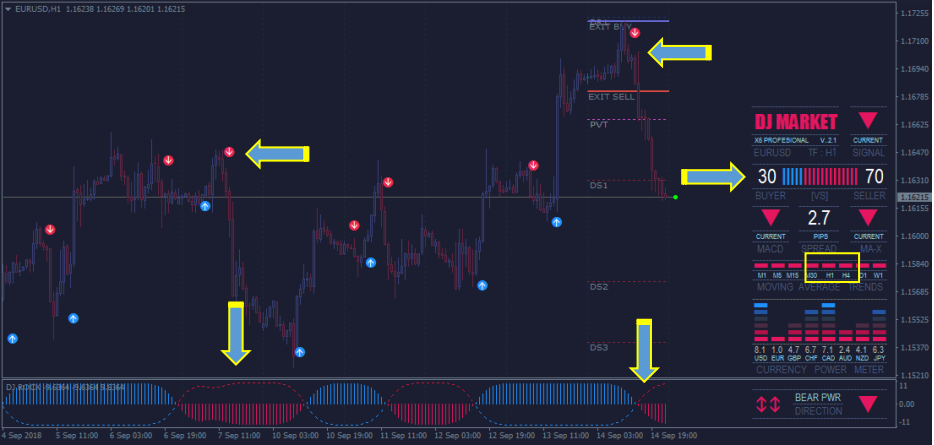 – Трендовая скользящая средняя M30, H1, H4 СИНЕГО цвета.