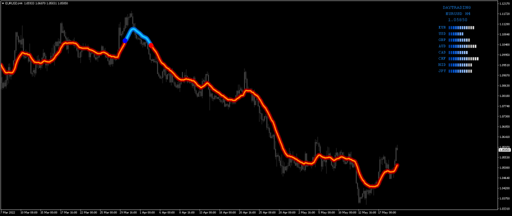 – На вспомогательном индикаторе убедиться в силе валюты.