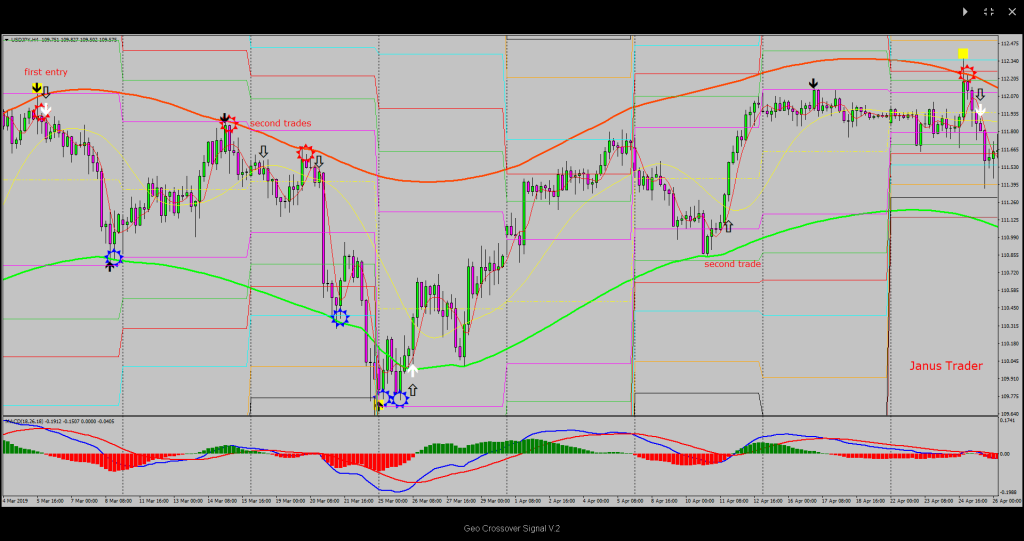 – Свеча закрывается выше линии индикатора Лагерра или MACD с зеленой гистограммой.