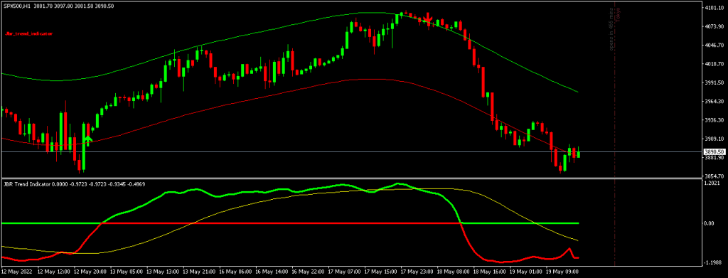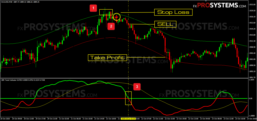 2.3. Теперь ждем подтверждения начала нисходящего тренда – JBR Trend должен изменить цвет с зеленого на красный.